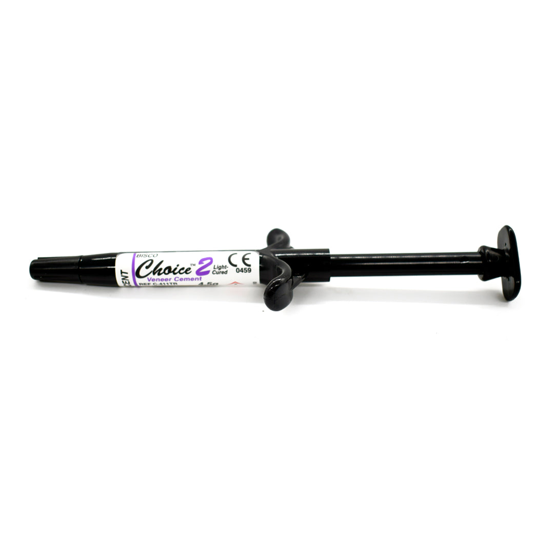 CHOICE 2 L/C es un cemento adhesivo, foto curado, con una fuerza de compresión alta y de color estable (ΔE<1.2s) formulado