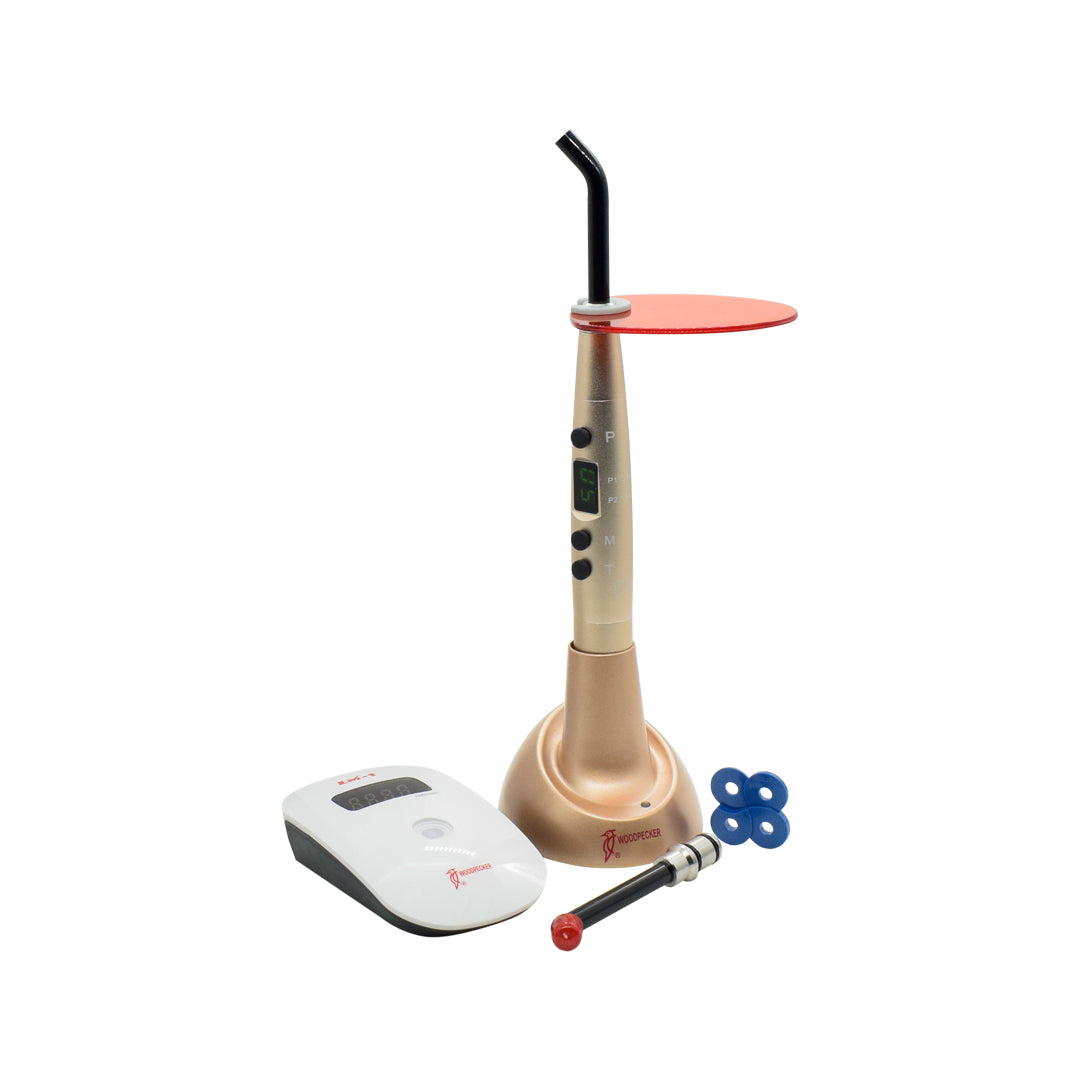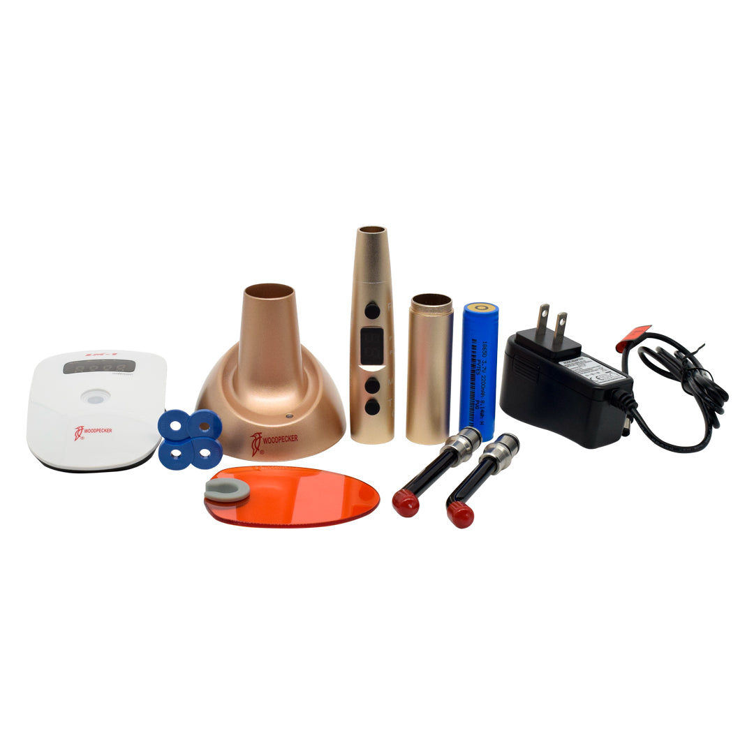 Incluye dos puntas de fibra óptica y un radiómetro dental.