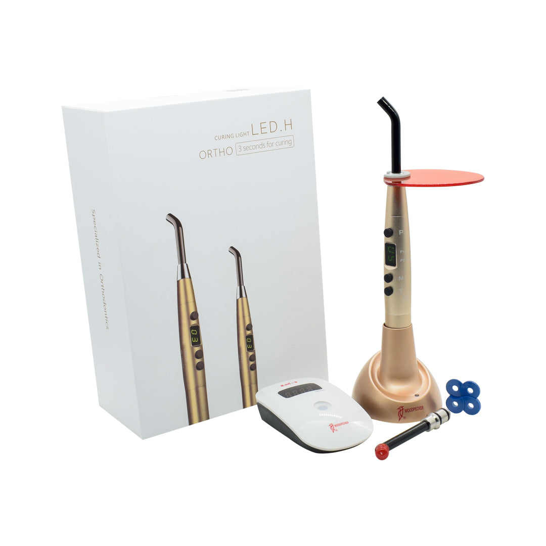 La lámpara de fotocurado o fotopolimerización Led H Ortho, cuenta con una guía de luz biselada, permitiendo facilidad para tocar cualquier parte del diente, puede crear radiación vertical en cualquier ángulo, hecha especialmente para los dientes posteriores. Trabaja continuamente, el cuerpo está hecho enteramente de metal con un sistema de enfriamiento inteligente, previniendo sobrecalentamiento después de un trabajo largo.